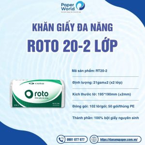 Khăn giấy đa năng Roto 20-2 lớp là lựa chọn thông minh, tiết kiệm và vệ sinh cho gia đình, văn phòng, nhà hàng, cơ sở y tế tại Đà Nẵng và khu vực lân cận.